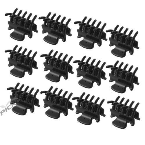12 Pcs 1.1" Long Black Plastic Mini Hairpin 10 Claws Hair Clip Clamp for Ladies