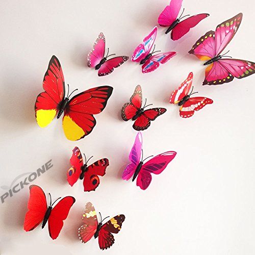 12 Pieces 3D Butterfly Stickrs Fashion Design DIY Wall Decoration House Decoration Babyroom Decoration-RED