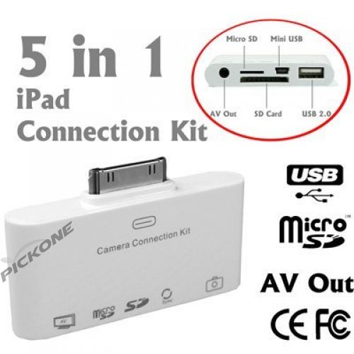 5 in 1 av out camera connection kit card reader for usb keyboard, sd, microsd, mini usb and sync pictures/ photos and video to itunes for apple ipad, ipad 2