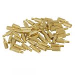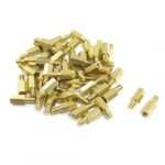 - Screw threaded hexagonal stand-off spacers of male-female type, with gold tone plated brass construction.