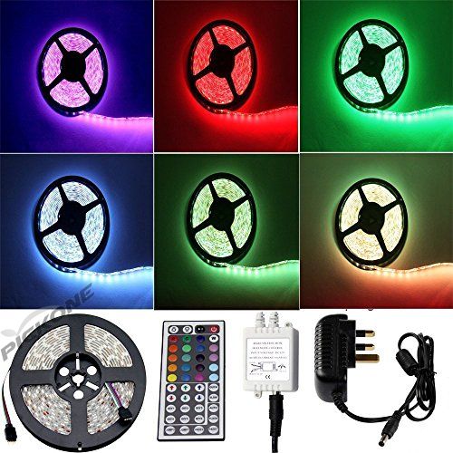ALED Waterproof SMD 5050 RGB LED Strip Light Flexible LED Ribbon 5 Meters 150 LEDs + 44 Key IR Controller + 12V AC Adapter. Ideal For Gardens,Homes,Kitchen,Cars,Bar,DIY Party Decoration Lighting