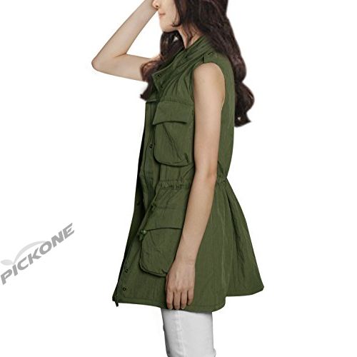 Military Vest, Hidden Zip Closure, Snap Button ClosureHip Length, Four Cargo Pockets, Collared