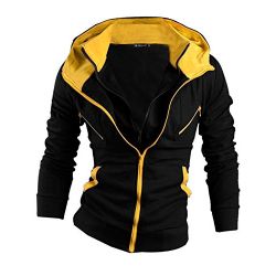 Allegra K Men Casual Kangaroo Pocket Contrast Color Hooded Jacket Black Yellow S...