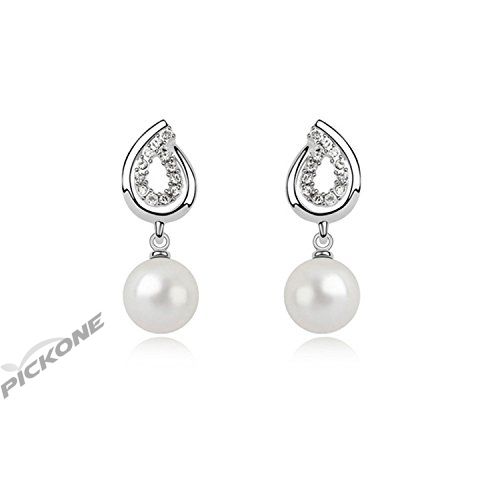 Blingery Platinum-plated Alloy White Pearl Pendant Earrings Jewelry High Qualitiy Guarantee One Pair