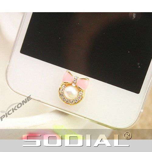 Brilliant Pearl Bow Tie phone Home Return Keys Buttons Sticker For iPhone 4S iPhone 5 iPod Touch iPad Repair Fix Replace Replacement(Blue or Pink)