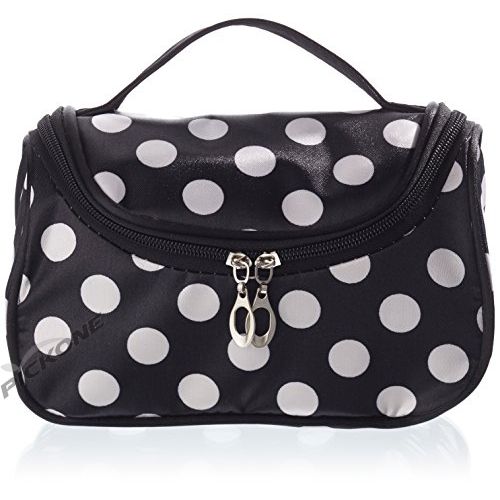 SODIAL(R)Black Zipper Bag Cosmetic Toiletry Bag Makeup bag Handbag with Points pattern.