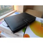 This case is equipped with a full working keyboard, USB cable, stylus and an extendable stand.