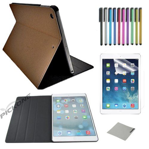 Protect your iPad Air now, This slim, light PU material with water resistant texture, portable to anywhere you like. Another function for this case is 3 ways stand with different angles, reduce and release hot easily. 2x Clear Screen Protector for your iPad Air protection also 10x Stylus pens for your different mood.