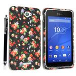 Samsung Galaxy Ace 4 SM-G357 / G357FZ Gel Rubber Silicone Protection Case Cover +STYLUS (Flowers Roses on Black)