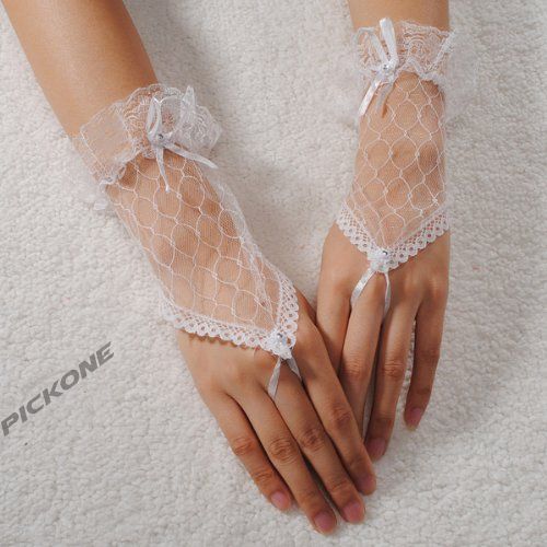Beautiful fingerless short gloves decorated with cute satin bowknots