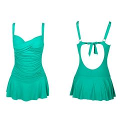 Zhuonizi One Piece Swimsuit Swimdress with Skirt Hem Hallow Out Back Swimwear...