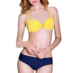 Zhuonizi Women's Bandeau Bikini Sets Halter Neck Swimwear Underwire Push Up Padd...