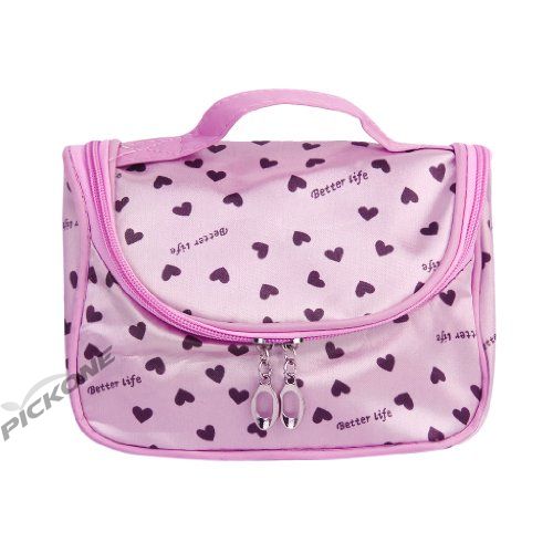 This Cosmetic Bag is perfect for holding all of your make-up in style. Your jewelry, cosmetics, vacation, toys, office, small parts and etc will be placed in the designer cosmetic bag orderly. This Cosmetic Bag is Great gift idea for anybody fancying make-up. Features: Compact cosmetic bag will organize your beauty essentials neatly in place Big dual zipper opening for easy access to your makeup items Slots and wide elastic strap on the inner side of the lid help to keep brushes handy Multi compartment toiletry organizer External dot details make it fashionable and attractive Material: Polyester Dimension: Approx. 8 x 4.5 x 3.5 inch / 20.3 x 11 X 8.9cm Color: Pale pink ground, coffee hearts Package Includes: 1 x Makeup Bag